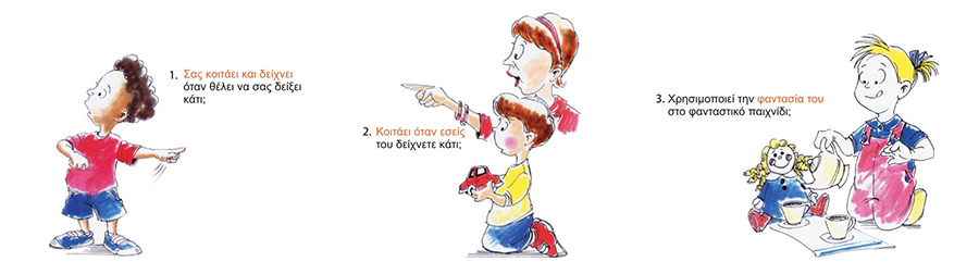 Στους 18 μήνες το παιδί σας πρέπει να έχει εκδηλώσει τις ακόλουθες συμπεριφορές: